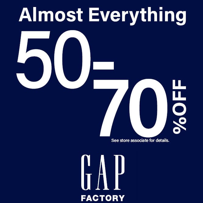 Gap Factory continues to revolutionize the retail industry at CENTRALIA OUTLETS with the latest offering in women’s, men’s, kids and baby clothes that embrace individuality.